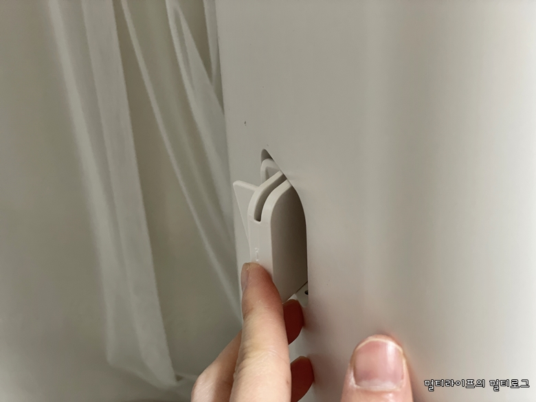 하지만 숨어있는 흡입구 걸이를 살짝 눌러서 바깥으로 돌려주면 흡입구 걸이가 바깥으로 나온다.