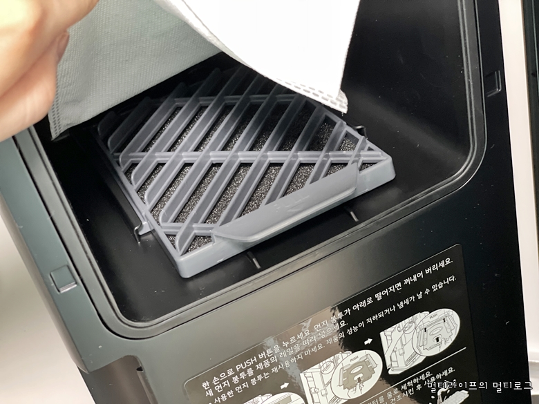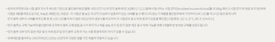 그리고 먼지봉투는 자주 교체해야하지 않을까 궁금할 수 있는데 용량이 2.5L라서 넉넉하기에 자주 교체할 필요도 없고 미세먼지 차단시스템으로 먼지 날림 걱정도 없다. 또한 UVC LED로 모아진 먼지봉투 내부에 쌓인 먼지 표면의 세균 증식을 억제해서 위생적으로 관리를 해주니 안심하고 사용했다.