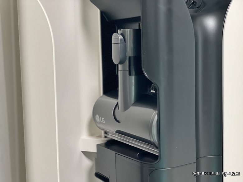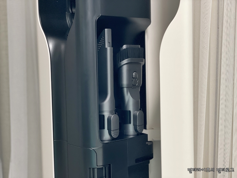 물걸레 흡입구 수납을 하지 않는다면 흡입구 걸이를 안으로 넣어버리면 되고 물걸레 흡입구 수납을 한다면 바깥으로 나오게 해서 사용하면 된다. 디자인면에서 정말 아이디어가 돋보였다.