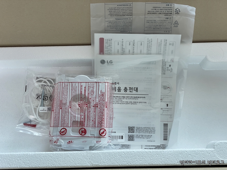 먼지비움충전대 상자를 여니 여분의 먼지봉투 2매와 먼지비움 충전대 설명서와 고정할 때 필요한 부품들이 들어있었다.