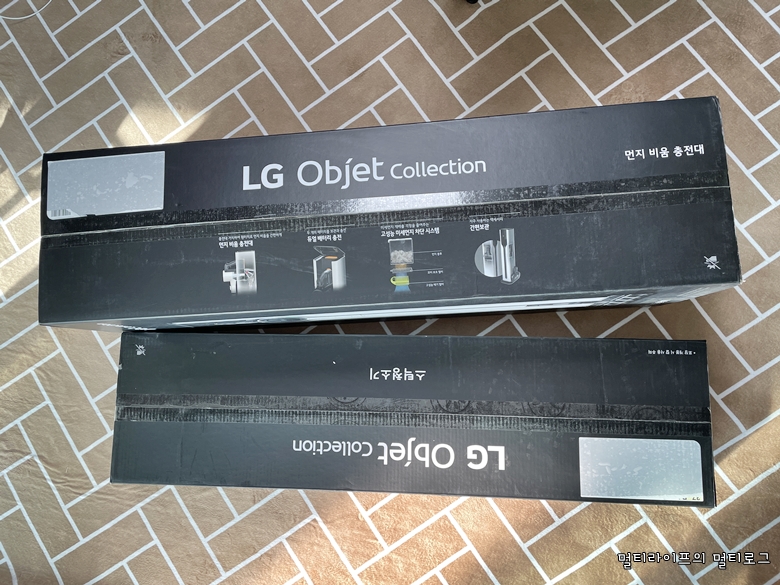 LG 오브제컬렉션 청소기(AO9571WKT)와 올인원타워(먼지비움충전대)는 상자에 담겨 도착했다.