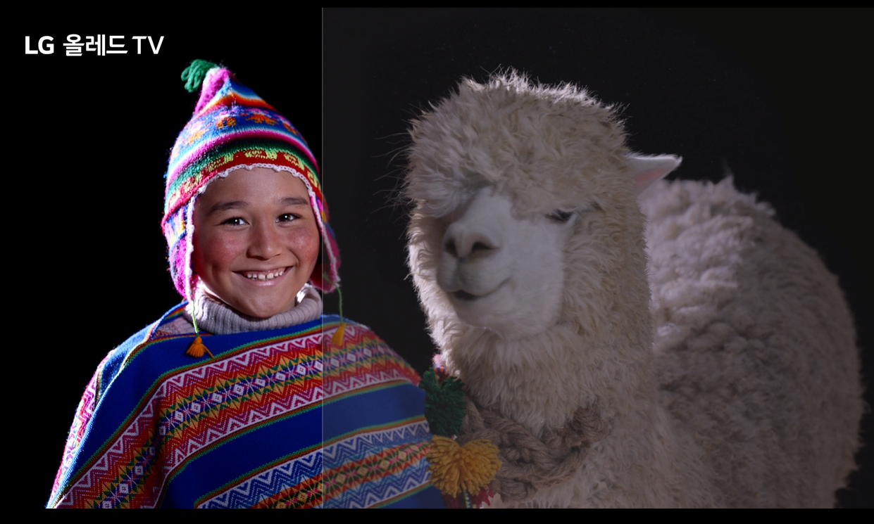 화려한 장신구를 한 여인과 알록달록한 옷을 입은 아이, 귀엽게 웃고 있는 하얀 양까지 모두 높은 명암비에서 더 생기있어 보임을 확실하게 느낄 수 있다. LG 올레드 TV는 정확한 블랙을 바탕으로 무한대 명암비를 지원하기 때문에 자연색에 가까운 색감을 표현할 수 있어 풍경 영상이나 영화를 볼 때 그 또렷하고 선명한 화질에서 받는 감동은 엄청나다.