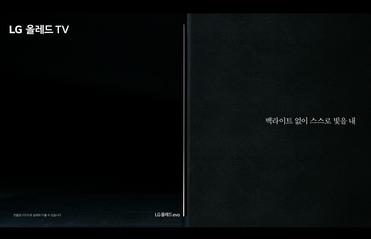 LG 올레드 TV는 정확한 블랙과 무한대에 가까운 명암비로 유명하다. 신규 CF에서는 정확한 블랙과 높은 명암비의 차이를 확실하게 보여주고 있다.