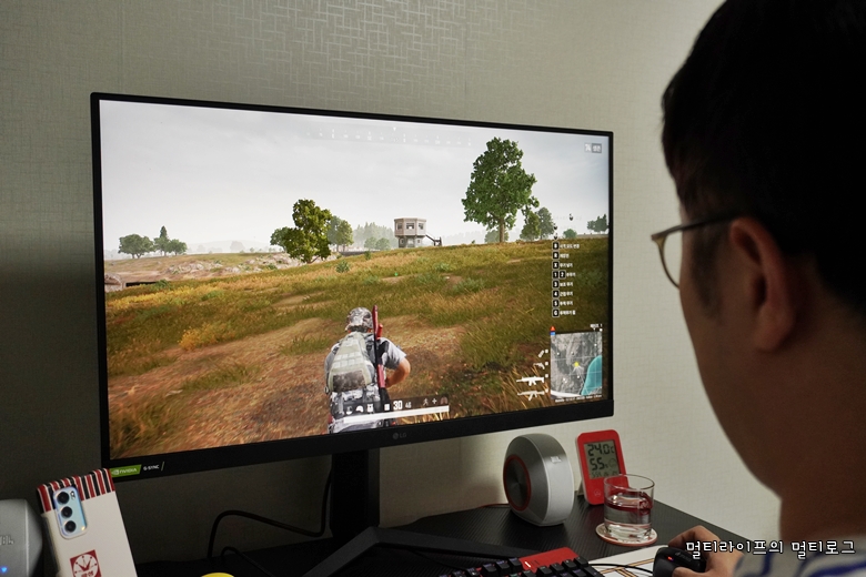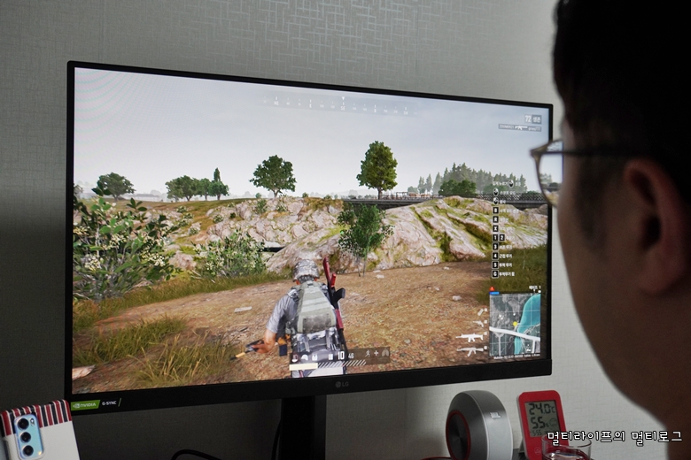아무래도 색상 표현을 확실하게 해주고 화면이 쨍하다 보니 배틀그라운드 게임을 할 때의 몰입감은 커졌다. 빠른 응답속도로 더 즐겁게 게임을 할 수 있음은 물론이다. 적과의 싸움 중에 부상을 입어 피가 튀었는데 그 피마저도 너무 선명했다.