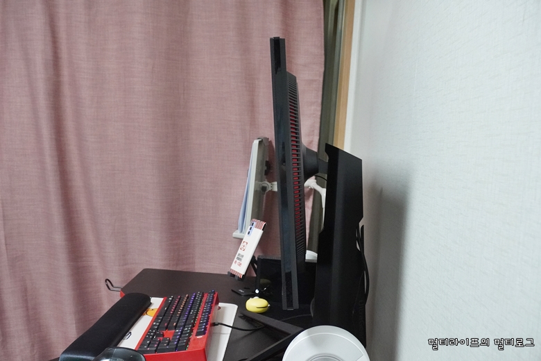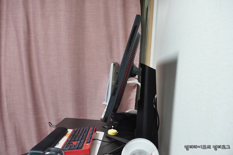 설치도 쉽지만 모니터 높이를 490.3mm에서 600.3mm로 조절이 가능하고 모니터 틸트 각도는 -5도부터 15도까지 조절이 가능해서 취향이나 책상 높이에 따라서 사용할 수 있다. 피벗 기능도 있어서 90도 돌려서 세로 모니터로의 활용도 가능하다.