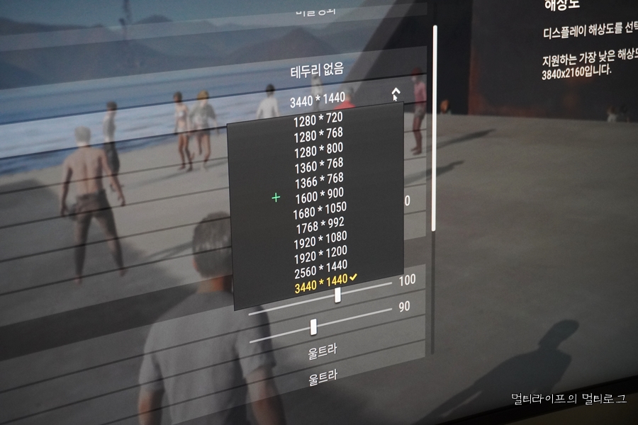 3440x1440 WQHD 해상도로 설정하고 본격적으로 배틀그라운드 게임을 해보았다.