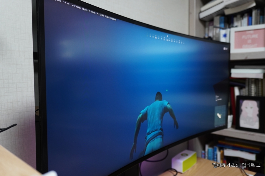 LG 울트라기어 게이밍모니터 34GP950G는 곡률이 적용된 곡면 울트라 와이드 게이밍 모니터로 사실적인 느낌이 더 잘 전달되는 것 같다. 나노 IPS 디스플레이로 어둡고 깊은 물 속의 느낌과 물살을 제대로 표현해내는데 그 몰입감이 상당했다.