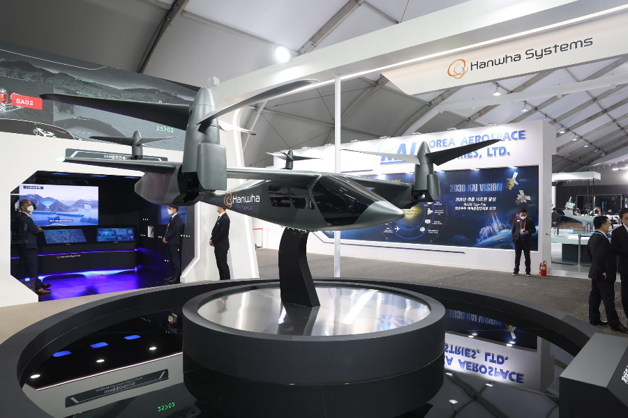 서울 ADEX 2021 전시장에서 만나는 국방 틸트로터 수직이착륙기 역시 한화의 첨단 방위기술을 확인할 수 있는 것 중 하나다. 한화시스템과 미국 오버에어가 공동 개발중인 전기동력 분산 수직이착륙기 버터플라이는 2025년 상용화를 목표로 하고 있다. 한화시스템의 센서, 레이더, 통신, 항공전자기술과 오버에어사의 특허기술인 에너지 절감 비행기술이 적용된 것이 특징이다. 날개 역할을 하는 대형 로터 4개가 전방과 후방에 장착되어서 이륙할 때는 수직으로 사용되고 운항할 때는 방향을 바꿔 수평으로 구동 돼 안정적이며 적은 에너지로 더 빠른 운항이 가능한 전기식 수직이착륙 항공기로 인원과 물자 수송, 감시 및 정찰 등 국방 분야에서 다방면으로 사용이 가능하기에 개발을 준비중이다.