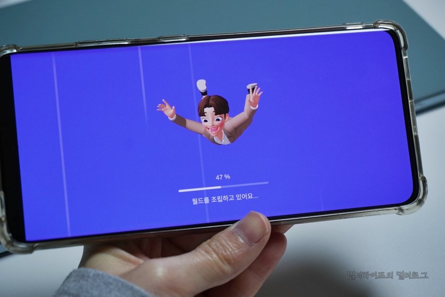 필자의 아바타는 신나게 날아서 프로미 캠핑월드로 가고 있다. 현실세계의 인물과는 좀 다르지만 메타버스에서 필자는 상당히 슬림하고 잘생겨보여 만족했다.