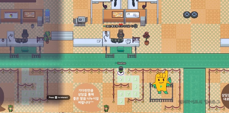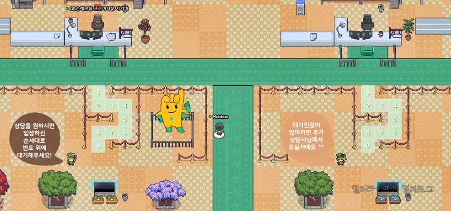 DB손해보험 고객센터에 바로 상담센터가 있다. 메타버스에서도 이렇게 보험 상담이 가능하다는 게 신기하고 놀라울 뿐이다. 필자는 보험에 관련해 궁금한 것도 있고, 상담하면 준다는 차량정비 쿠폰을 받아보려고 3층 상담센터에 입장했다.