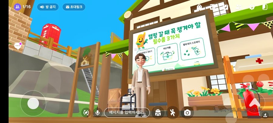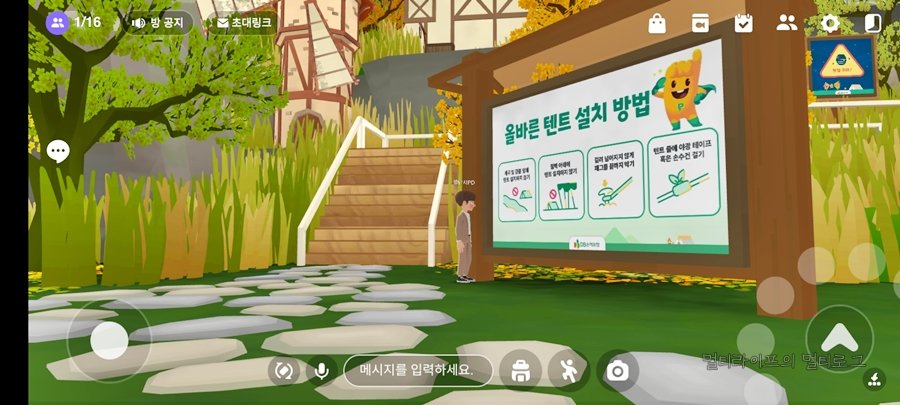 캠핑갈 때 챙겨야 할 필수품 3가지 안전수칙 앞에서 사진을 찍어보았다. 프로미 캠핑월드에는 다양한 안전수칙이 있는데 이 안전수칙들을 찾아서 이렇게 사진을 찍으면 된다. 제페토 안의 캠핑장은 정말 실제 캠핑장처럼 꾸며져 있어서 놀라울 뿐이다. 야외 무대를 비롯해서 아늑한 텐트, 오두막 등 정말 실제와 비슷하다. 대충 찍어도 인생샷을 찍을 수 있는 호수, 낚시터 등을 비롯해 예쁜 가상공간을 만나게 되니 왠지 나 대신 아바타가 캠핑을 간 느낌이라 기분도 좋아졌다. 안전수칙을 찾아서 이렇게 스크린 샷을 꼭 남기도록 하자. 안전수칙 앞에서 셀카찍기는 필수!