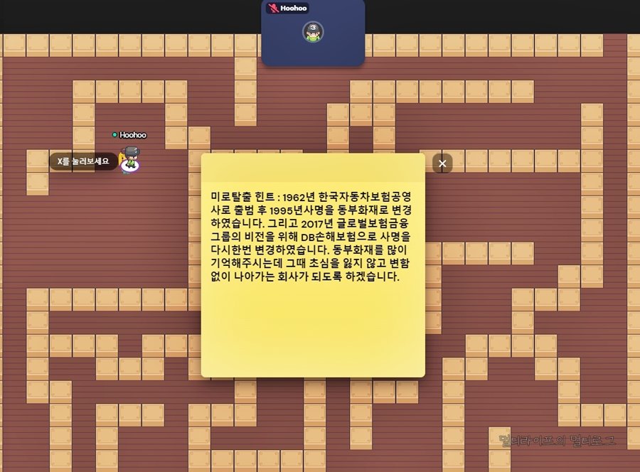 한 시간 정도 미로와의 싸움 끝에 미로찾기 게임을 클리어했다. 게임 클리어 창이 나타나면 홀로그램 아바타를 통해서 인증샷과 경품 신청을 하면 된다. DB손해보험 게더타운 이벤트 경품 응모 창에 이름과 휴대폰를 입력하고 개인정보 이용동의에 체크를 하고 응모완료 버튼을 누르면 끝난다. 이벤트는 매주마다 바뀌니 매주마다 새로운 게임을 하는 즐거움도 느낄 수 있다.