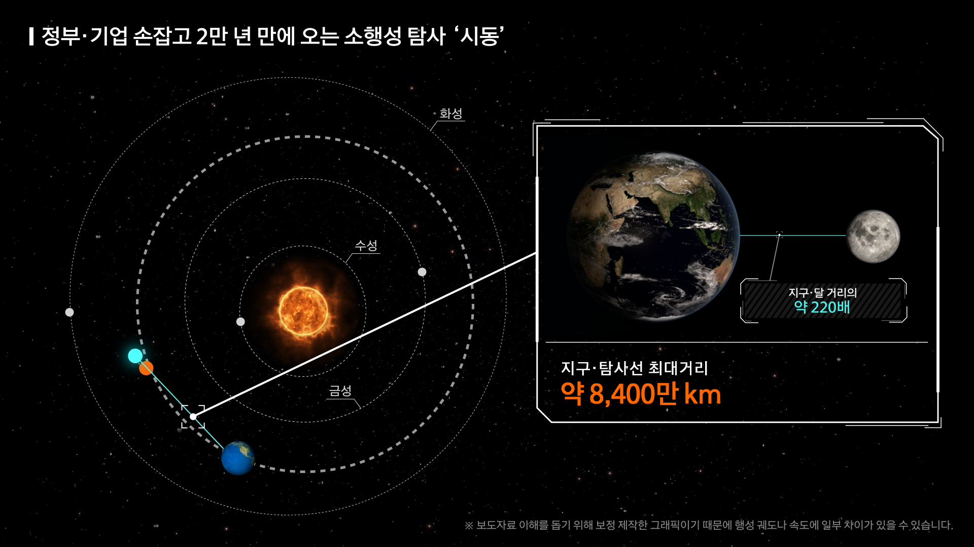 2만년만에 찾아오는 소행성 아포피스는 2029년 4월 지구 3만 1600km 상공을 통과하는데 이때 소행성 아포피스를 조사하는 것이다. 63빌딩 높이의 약 1.5배인 370m짜리 소행성 아포피스를 조사하는 이 프로젝트는 고로 3만 6500km에 떠 있는 천리안 위성보다도 약 5000km 가깝게 접근하고 무엇보다도 300m가 넘는 소행성이 이렇게 지구를 스쳐지나는 건 수천년, 길게는 2만년에 한 번 있는 일이라고 한다.