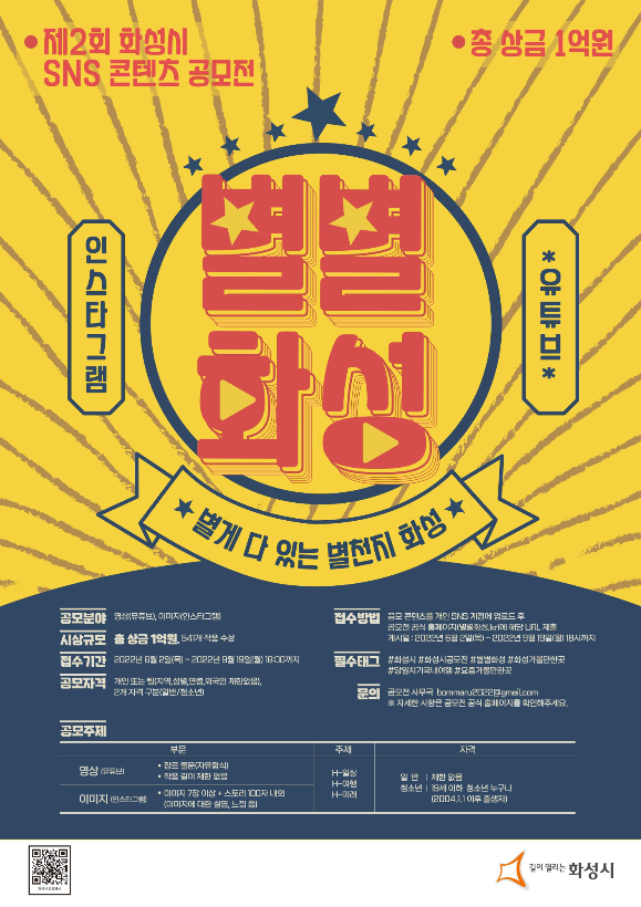 화성시 일상·여행·미래 주제, 유튜브/인스타그램 공모전을 통해 다양한 모습을 알리는 2022 화성시 SNS 콘텐츠 공모전 “별별화성 공모전”』 진행