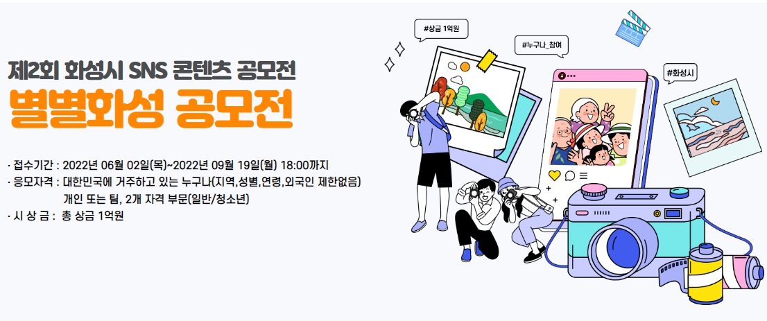 화성시 일상·여행·미래 주제, 유튜브/인스타그램 공모전을 통해 다양한 모습을 알리는 2022 화성시 SNS 콘텐츠 공모전 “별별화성 공모전”』 진행