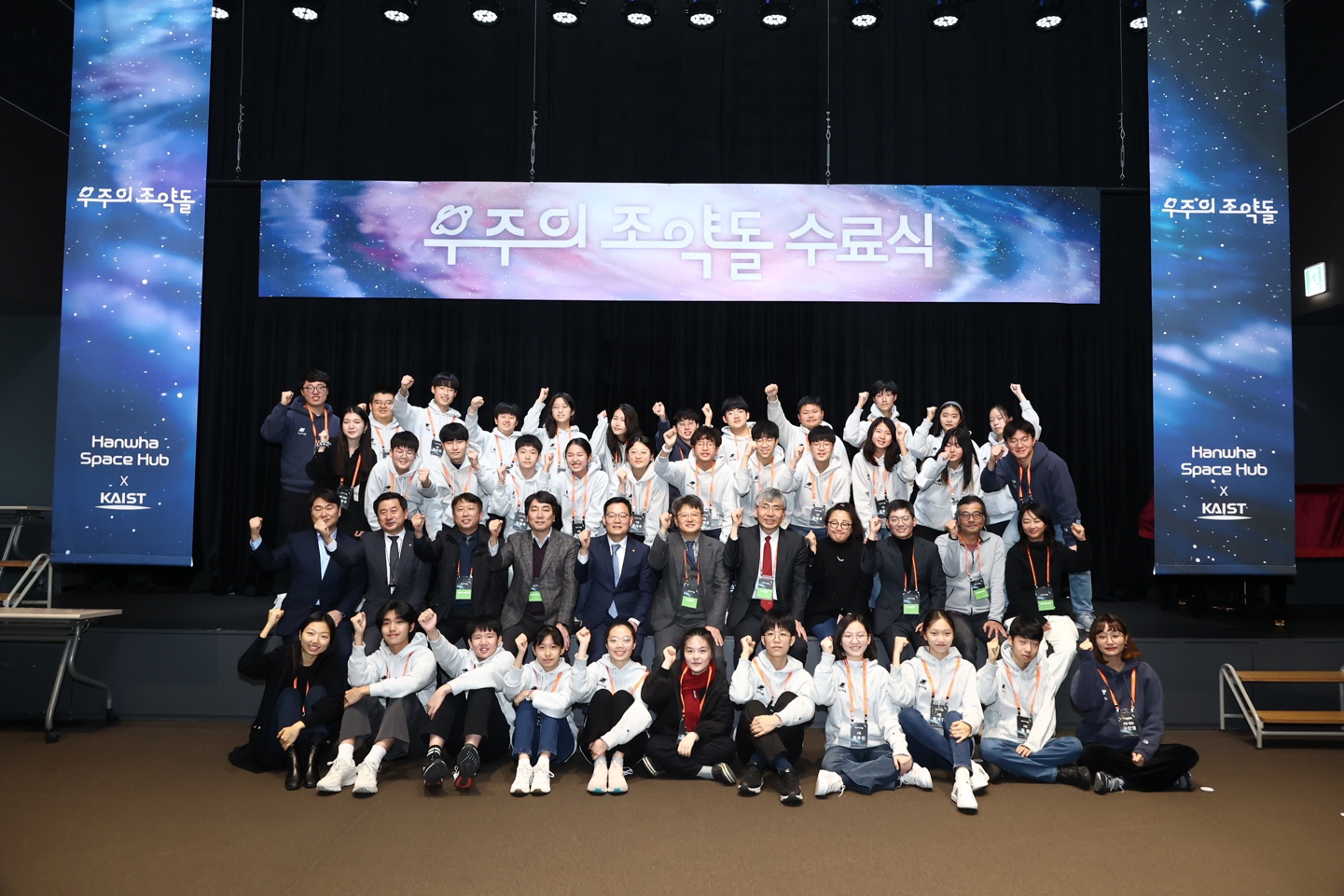 지난 7일 한화빌딩에서는 '우주의 조약돌'1기에 참여한 중학교 1, 2학년 수료생 29명이 '우리가 살에 산다면' 주제로 6개월간 진행한 프로젝트 발표와 함께 수료식을 마쳤다. 우주의 조약돌 1기는 2022년 7~12월까지 KAIST 항공우주공학과 현직 교수 8명과 석, 박사 과정의 멘토의 도움을 받아 진행이 되었다.