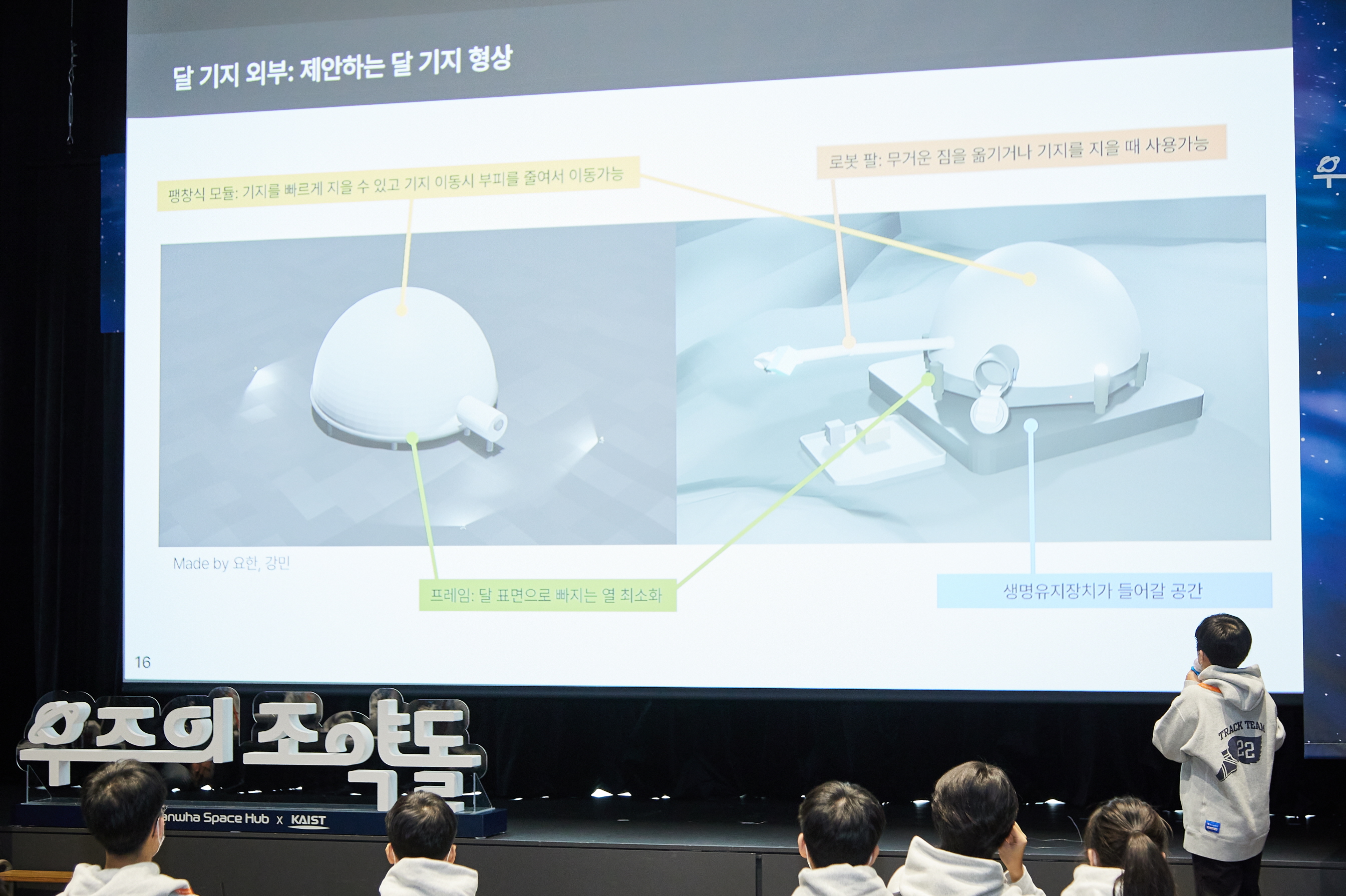 수료식에서 학생들은 달 탐사 기지를 종이처럼 접어서 로켓에 실어보내는 '종이접기형 달 탐사기지', '비행형 채굴 로봇', '거울위성 태양광발전', 달 탐사 기지 내 인공 중력을 만들어 우주인이 지구와 같이 안정적인 생활할 수 있는 '인공중력기지' 등 다양한 분야의 아이디어를 제시하고 이를 구체화한 결과물을 발표했다.