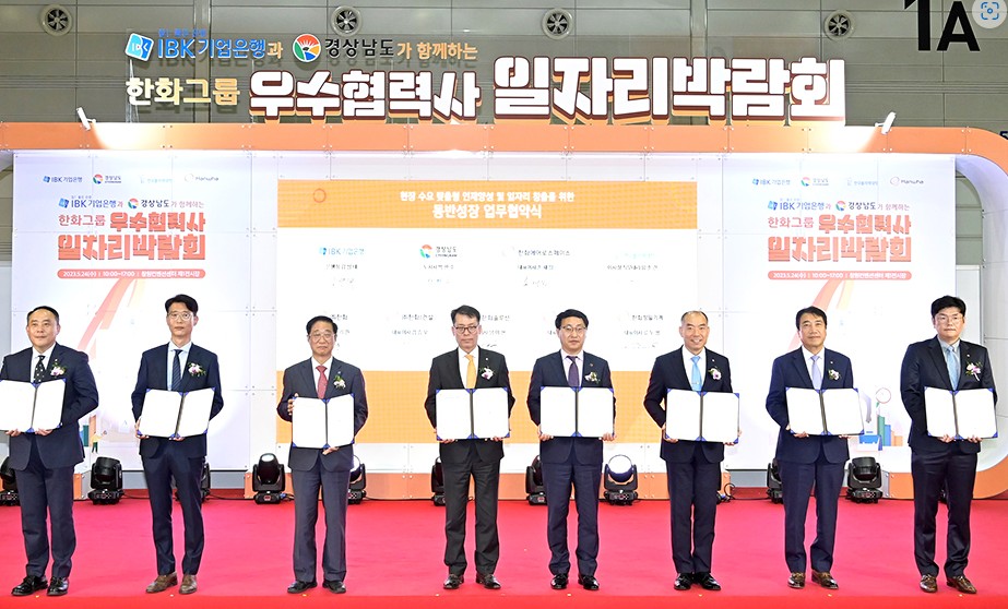 한화그룹은 경남대표기업으로 지역 내 협력사와 함께 성장하고 있다. 올해는 상생 협력 관계를 굳건하게 하고, 지역경제 활성화에 이바지 하기 위해 경남 창원의 컨벤션센터에서 5월 24일 '일자리 박람회'를 개최하며 경남도민들의 많은 주목을 받았다.