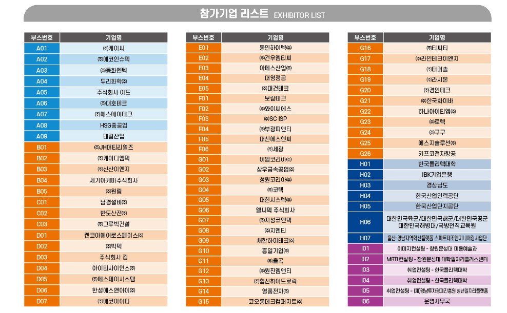 이번 박람회에서는 경상남도, IBK기업은행, 한국폴리텍대학과 공동으로 한화에어로스페이스, (주)한화, (주)한화/건설, 한화솔루션(주), 한화시스템(주), 한화정밀기계가 참여했다.
