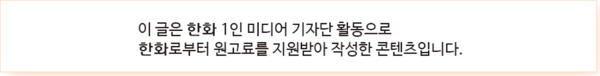 컨텐츠 크리에이터라면 모두가 탐낼만한, 모두가 부러워할만한 혜택이 따라붙으니 고민말고 서둘러 지원하는 게 답이다. 1년에 단 한 번, 이때 아니면 다음은 없는 한화 1인 미디어 기자단에 지원해보자. 원고비와 현장 취재비 지원, 다양한 취재활동 등 한화 1인 미디어 기자단 활동을 통해 지식의 폭을 넓히고 활동의 폭도 넓히다보면 자신도 많이 성장하게 되었다는 걸 깨닫게 될 것이다.