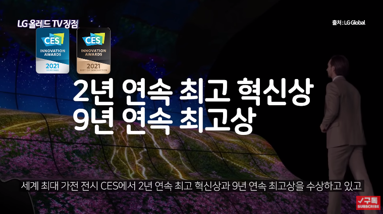 LG 올레드 TV의 수상내역은 참으로 다양하다. 세계 최대 가전전시 CES에서 엔가젯 기준으로 7년 연속 최고 TV로 선정되고 영상 음향 전문가협회 ELSA어워드에서 9년 연속 최고 제품상을 받았다. 세계 3대 디자인상 IEDA 2019 Gold/ 레드닷 2020 Best of the Best / iF 디자인 2020 Winner를, TV 예술과학 아카데미 선정 기술공학 에미상을 수상했다.